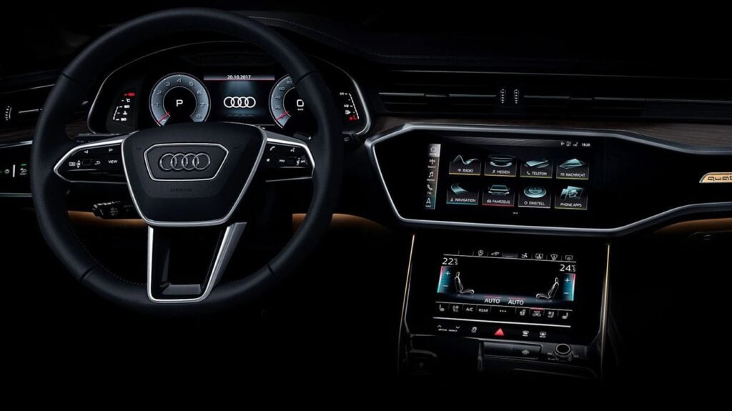 يستبدل أحدث جيل من نظام المعلومات والترفيه من Audi وحدة تحكم دوارة (مثل iDrive من BMW) بشاشة تعمل باللمس مع ردود فعل لمسية، وكبداية، تعمل الشاشة التي تعمل باللمس على تحويل الانتباه عن الطريق أكثر من استخدام عجلة فعلية للتمرير عبر القوائم، كما أن القوائم نفسها أقل سهولة من تلك الموجودة في الفئة الخامسة و على الجانب الإيجابي، الشاشة حادة وكمعيار يبلغ 8.8 بوصة قطريً، ولكن بإضافة حزمة التكنولوجيا، ستشمل الترقيات شاشة أكبر بحجم 10.1 بوصة.