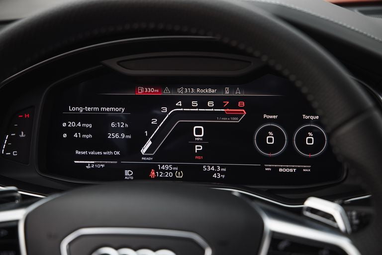 تم تجهيز كل RS7 بنظام معلومات ترفيهي أنيق يعمل عبر شاشتين تعملان باللمس والتي تمتزج بسلاسة مع لوحة القيادة العلوية ووحدة التحكم المركزية المتدفقة ولسوء الحظ فإن عناصر التحكم في المناخ والإعدادات الأخرى التي يجب معالجتها من خلال الشاشة السفلية يمكن أن تجذب أعين السائق بعيداً عن الطريق.