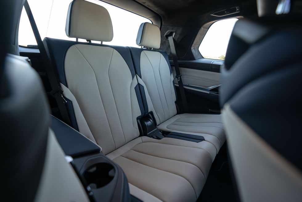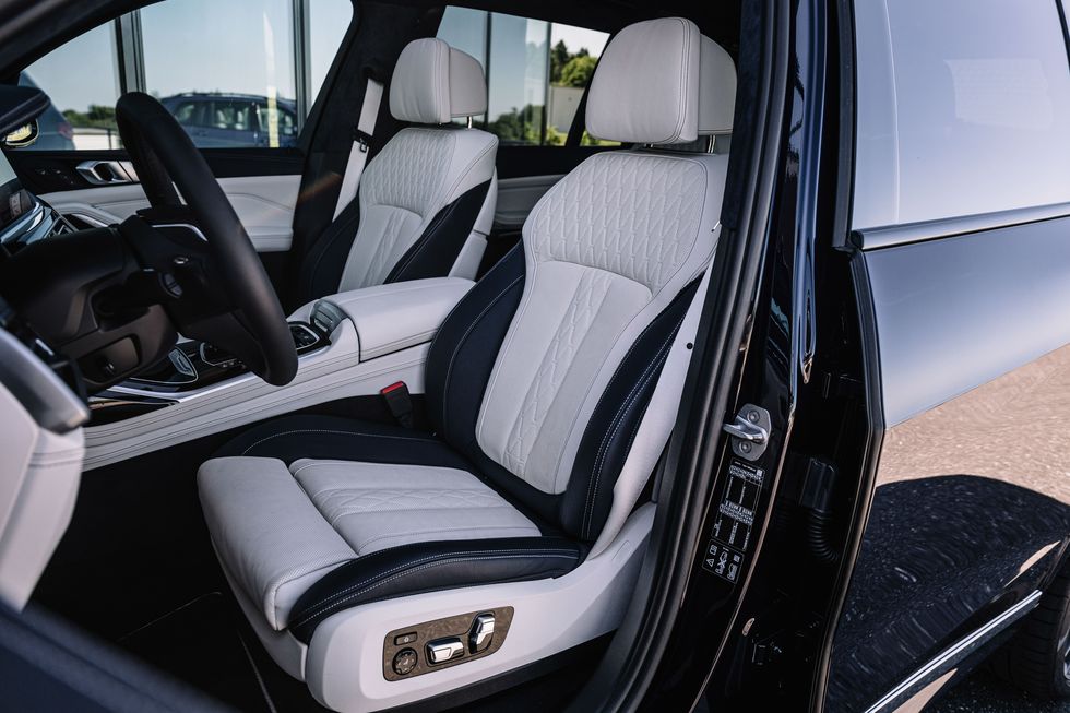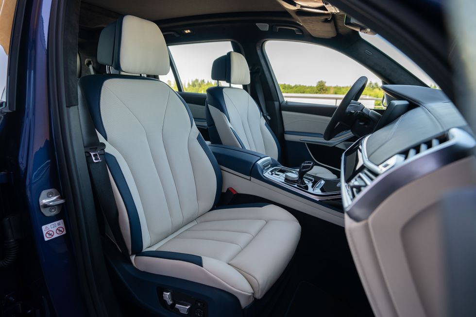 على الرغم من الإعجاب بالقدرة الحصانية والتسارع الفائق لمحرك V-8 التوربيني المزدوج فإنه يُوصي باستخدام X7 xDrive40i وكانت مجموعة نقل الحركة سداسية الأسطوانات التي اختبرت ناعمة كالحرير وسريعة جداً و لديها مجموعة من الميزات القياسية المرغوبة التي تشمل التحكم في المناخ في أربع مناطق وفتحة سقف بانوراميةومقاعد أمامية قابلة للتعديل كهربائياً مع إعدادات الذاكرة، ومقاعد أمامية مدفأة وباب خلفي كهربائي والمزيد وتضيف أيضاً أحد خيارات تنجيد جلد Vernasca ومجموعة Premium ويتضمن الأخير شاشة عرض رأسية وأدوات تحكم بالإيماءات وأبواب تغلق بسلاسة.