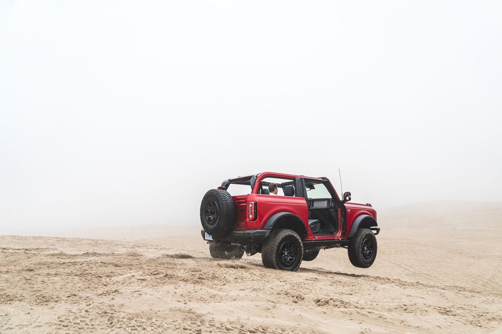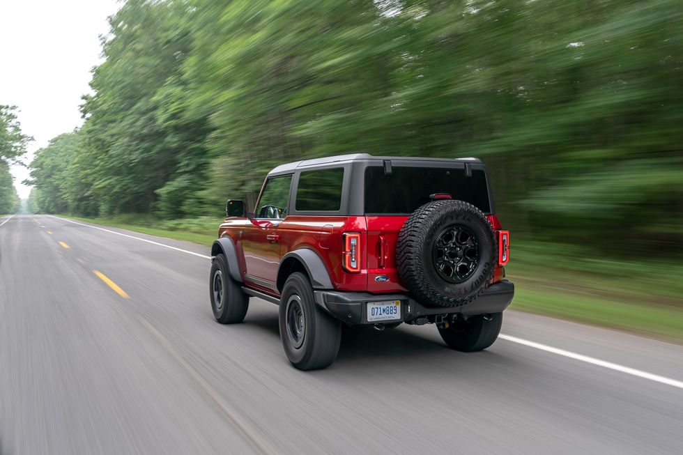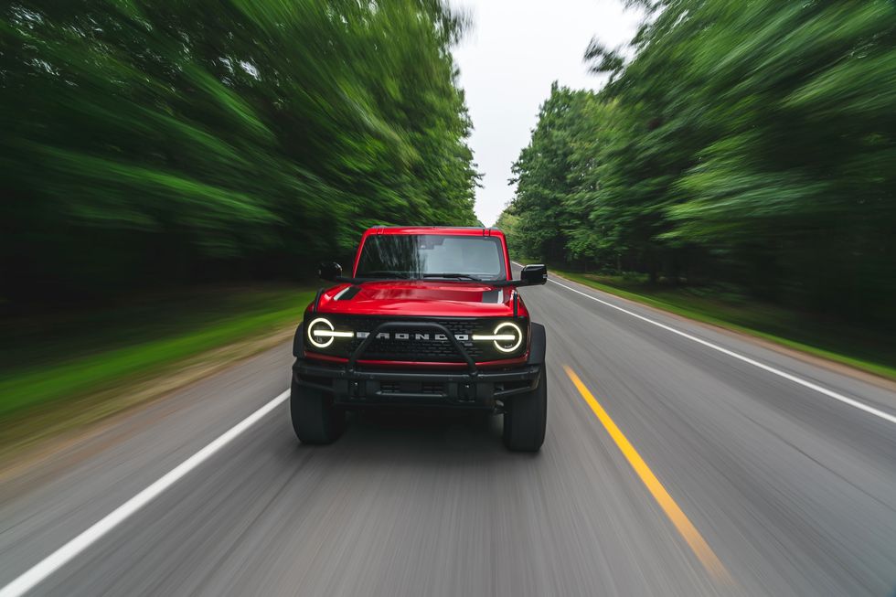 أثارت برونكو الإعجاب بشكل كبير بفضل صقلها على الطريق و ليس فقط توجيهها أكثر دقة من عجلة رانجلر ولكن فورد تتعامل بشكل أفضل بشكل عام و بالطبع السيارة مجهزة بأكبر إطارات وأنعم لناحية التعليق وهناك انغماس كبير في الفرامل، وبنيتها الهيكلية على الهيكل ليست سرية.